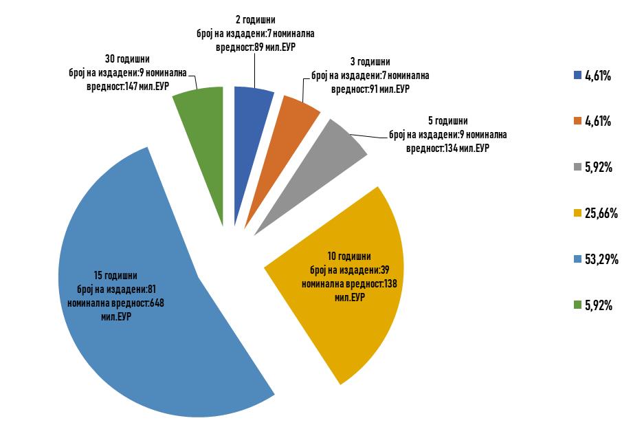 Структурата на котираните државни обврзници според рочноста и номиналната вредност е следна: