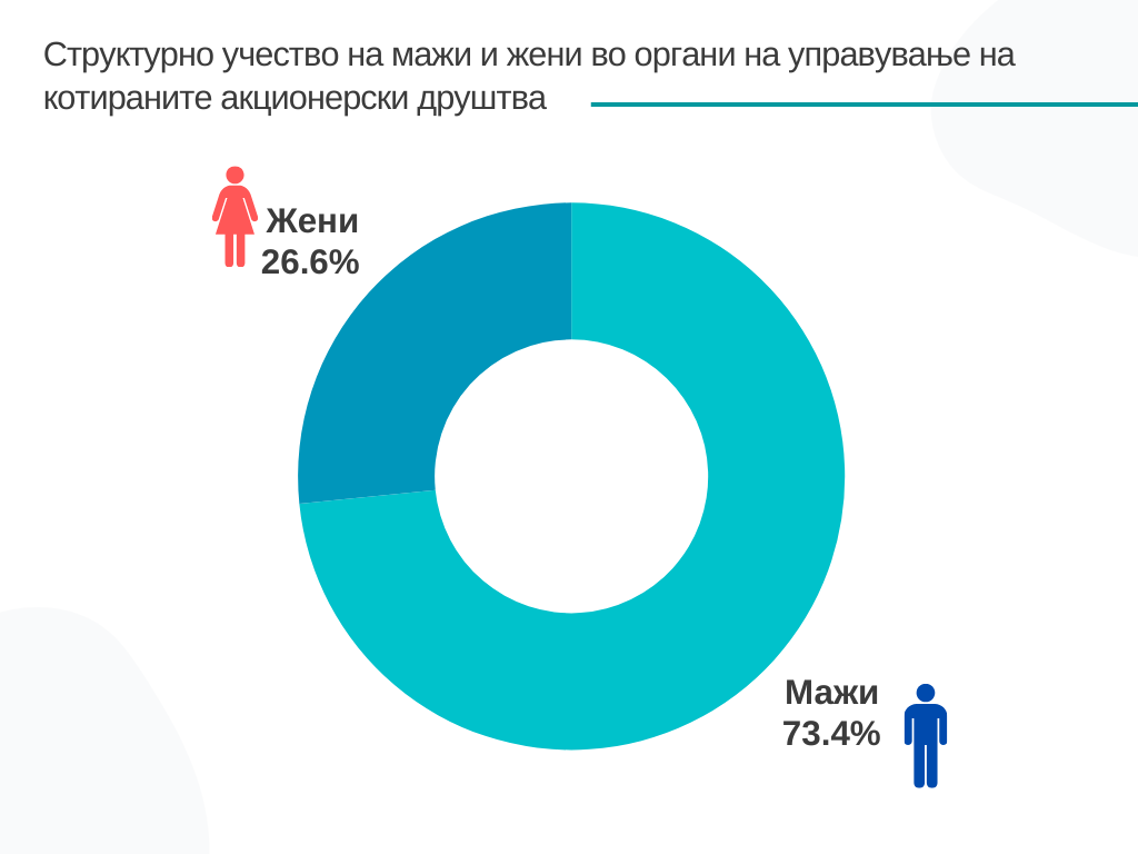 Од вкупно 549 членови во органите на управување на котираните акционерски друштва, само 26,6% се жени.