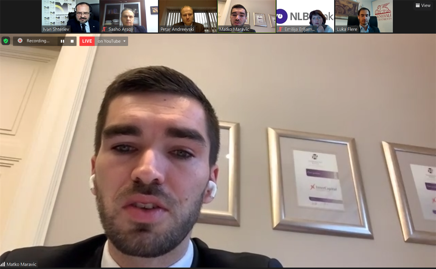 Своите мислења на дебатата ги споделија Емилија Брљамова, Раководител на Службата за услуги со хартии од вредност, НЛБ Банка Скопје, Сашо Арсов, Редовен професор, Економски факултет, Универзитет „Св. Кирил и Методиј“ Скопје, Петар Андреевски, Главен извршен директор, ВФП АД Скопје. Matko Maravic, CEO, InterCapital Securities Ltd, Croatia и Luka Flere, Head of Asset Management, Generali Investments LLC, Slovenia.