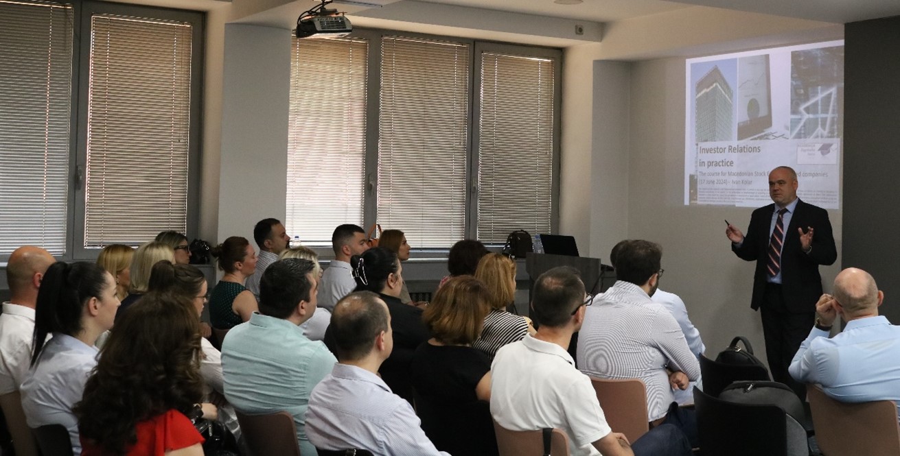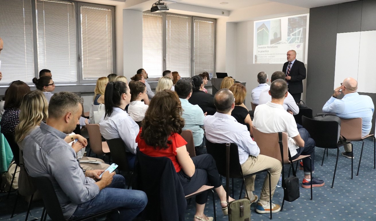 Предавач на обуката беше Иван Колар, Директор на Секторот за односи со инвеститори во хрватската компанија INA Grupa. Преку целодневна презентација, г-динот Колар придонесе за зајакнување на знаењето на учесниците од практична перспектива. Осврнувајќи се на стандардите за транспарентност во Хрватска и на развиените пазари, преку чија примена инвеститорите го следат и оценуваат работењето на котираните компании на берзите, беше нагласено дека од исклучително значење е континуирано развивање на знаењето од областа на односи со инвеститори во компаниите.