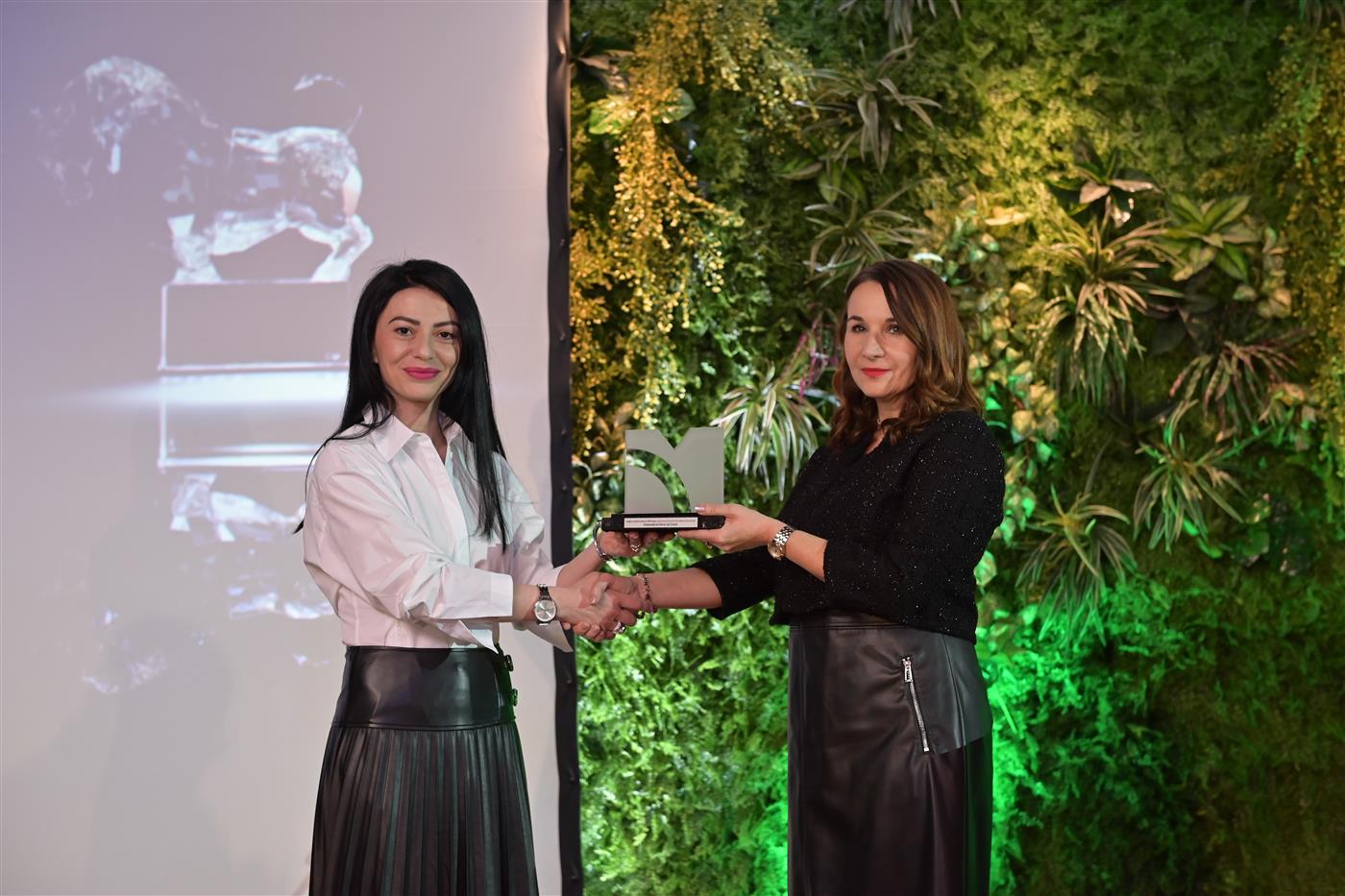 • Во конкуренција на акционерски друштва над 50 милиони пазарна капитализација добитник е Комерцијална банка АД Скопје, a во име на банката наградата ја прими Маја Стевкова Штериева, Главен Финансов директор.