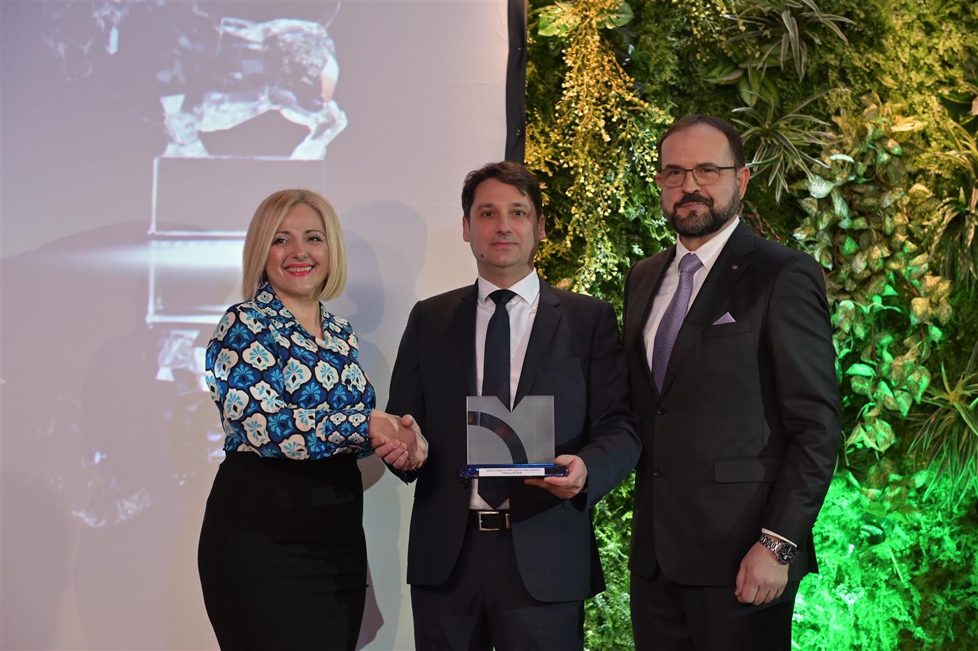 • Во конкуренција на акционерски друштва над 50 милиони пазарна капитализација добитник е Македонски Телеком АД Скопје, а Златко Кузмановски, Виши специјалист за корпоративни финансии, во име на Македонски Телеком ја прими оваа награда.