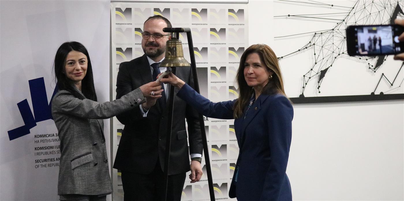 По овој повод, денеска, ѕвоното на Македонска берза го заѕвонија Kate Marie Byrnes, Амбасадорка на Соединетите Американски Држави во Северна Македонија, Нора Алити, Претседателка на Комисијата за хартии од вредност и Иван Штериев, Главен извршен директор на Македонска берза.