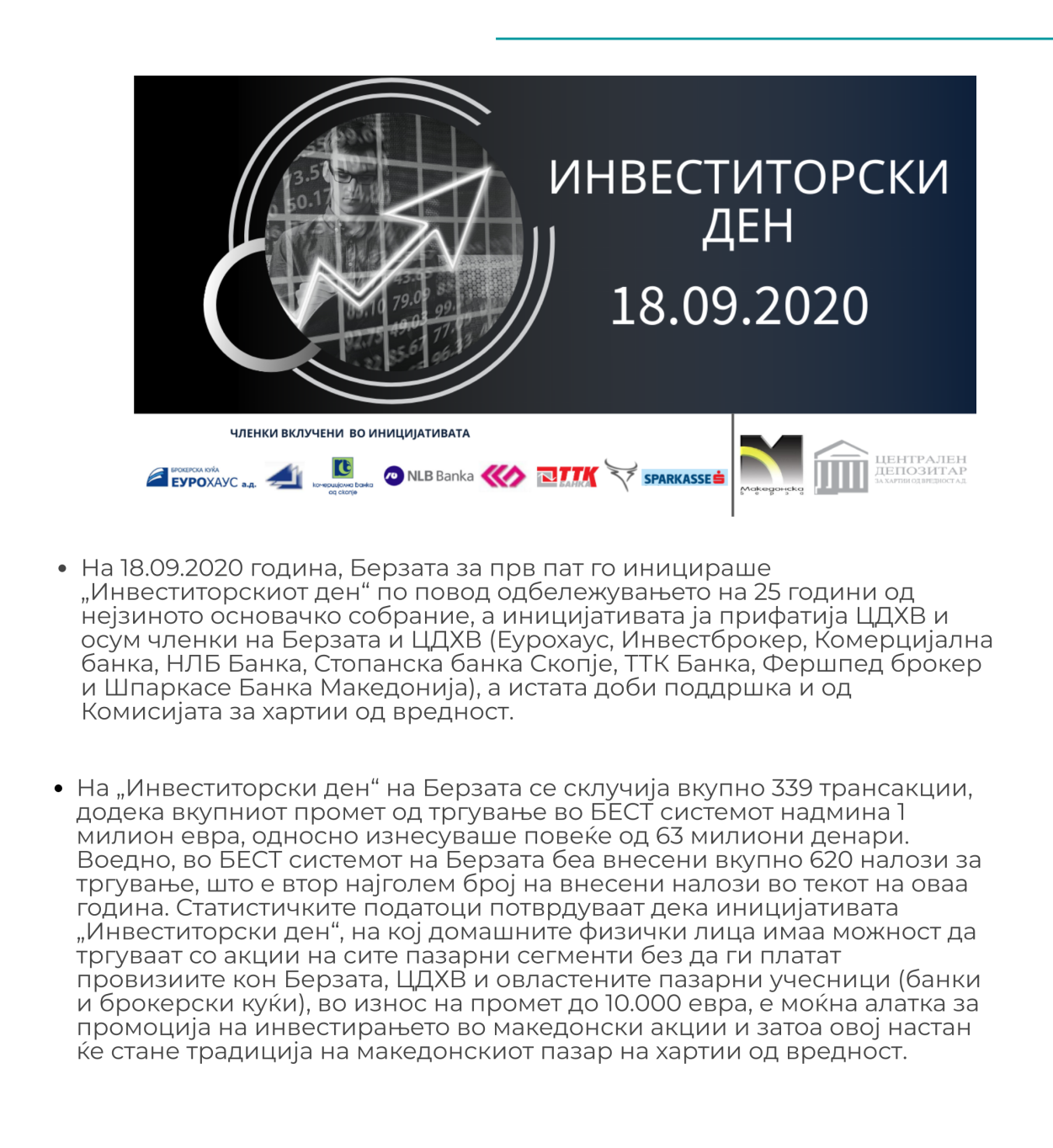 Во септември Берзата успешно го организираше првиот Инвеститорски ден на Берзата.