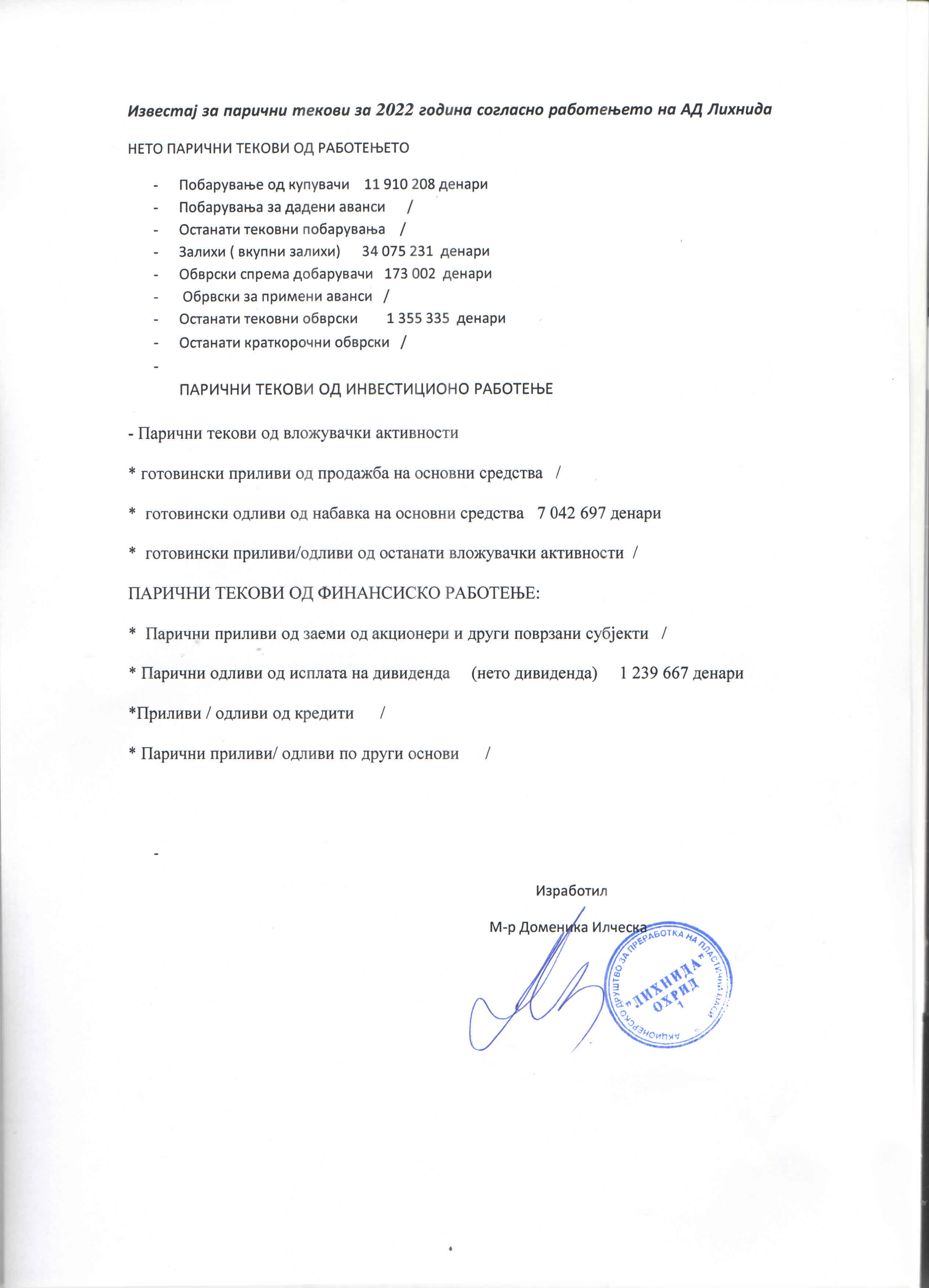 Лихнида АД Охрид - Податоци од финансиски извештаи и дивиденда