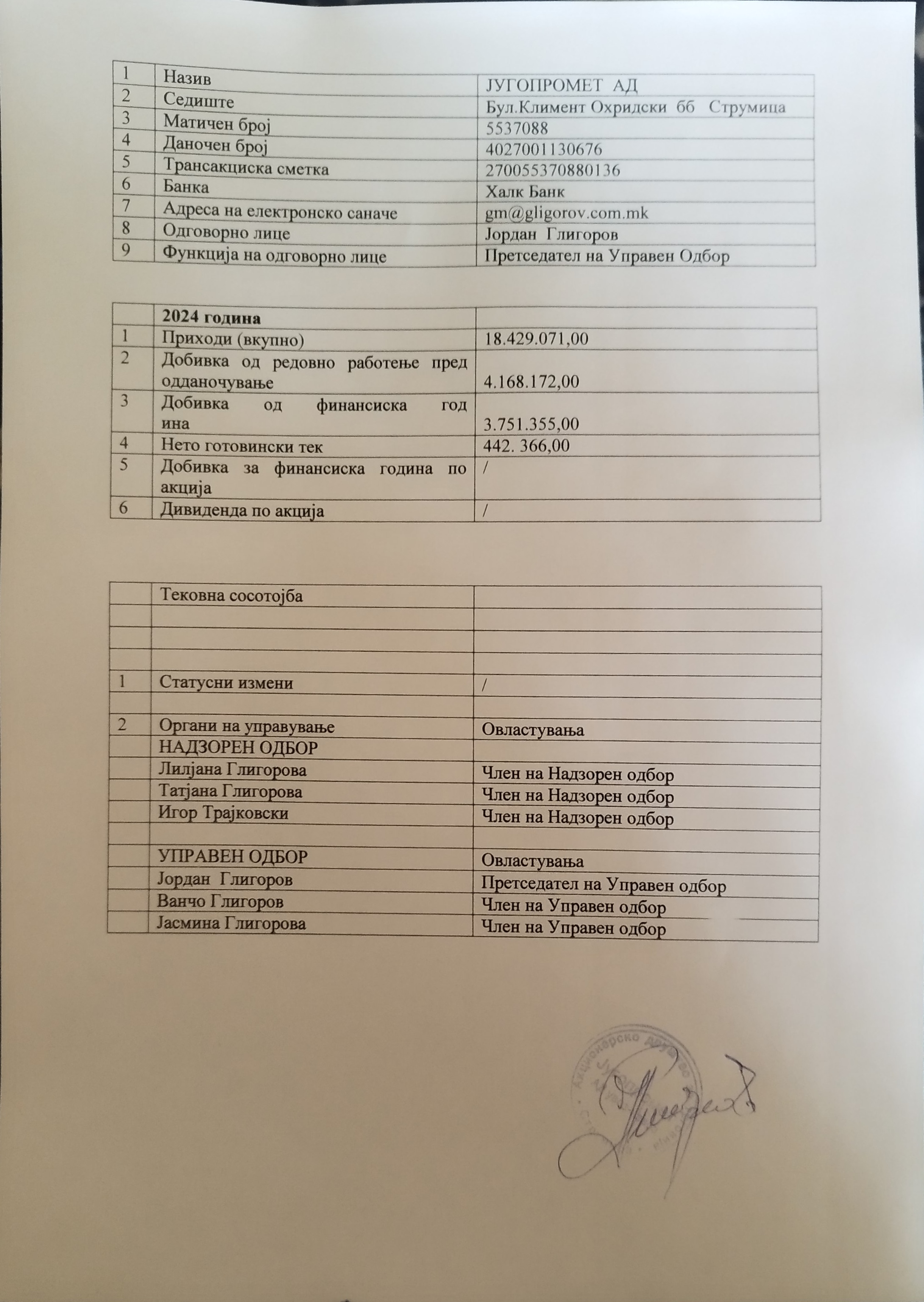 Согласно член 166-б, точка 1, алинеја 1 од Законот за Хартии од вредност ги објавуваме финансиските податоци и податоци за дивидендатa.