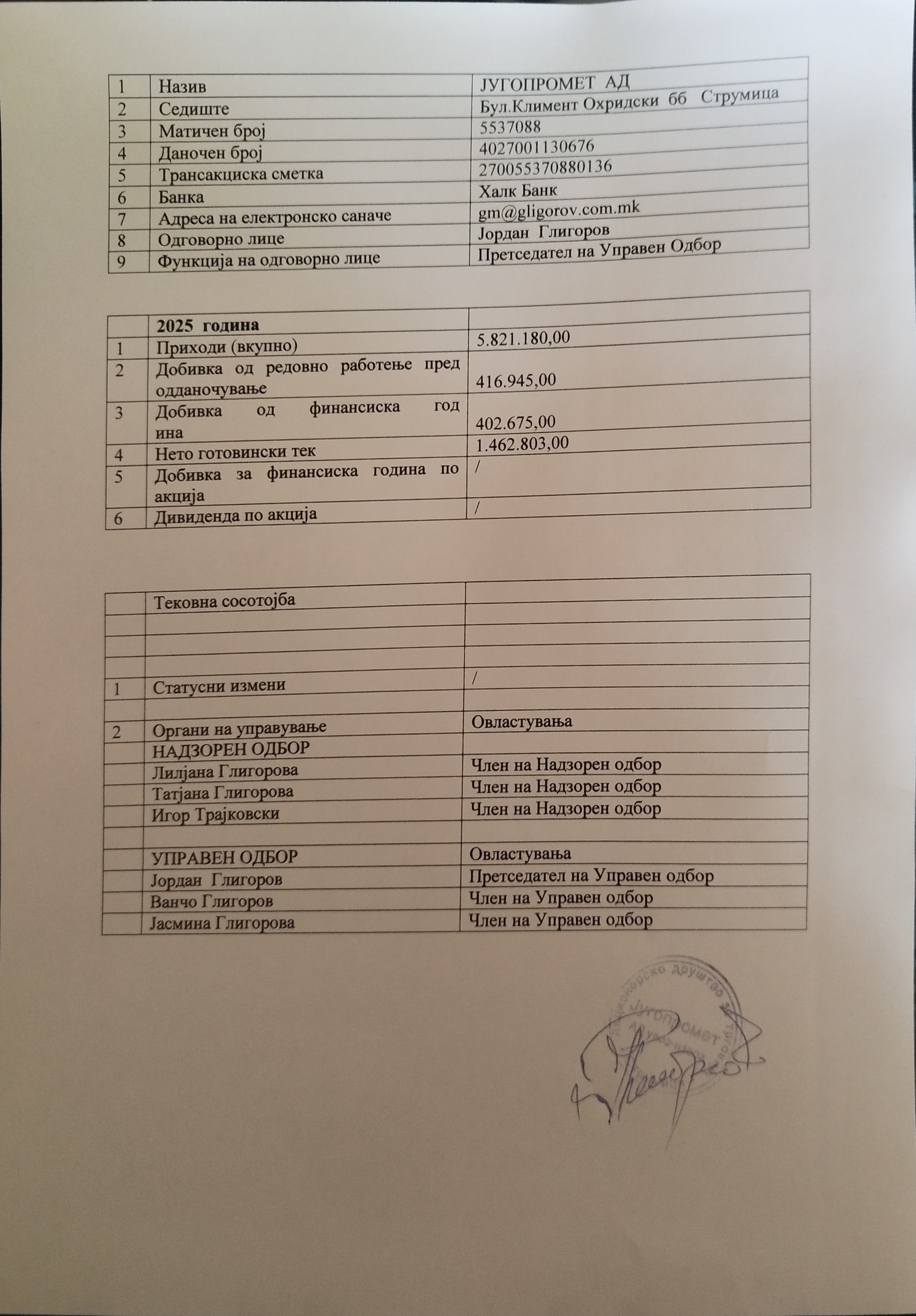 Југопромет АД Струмица - Податоци од финансиски извештаи и дивиденда