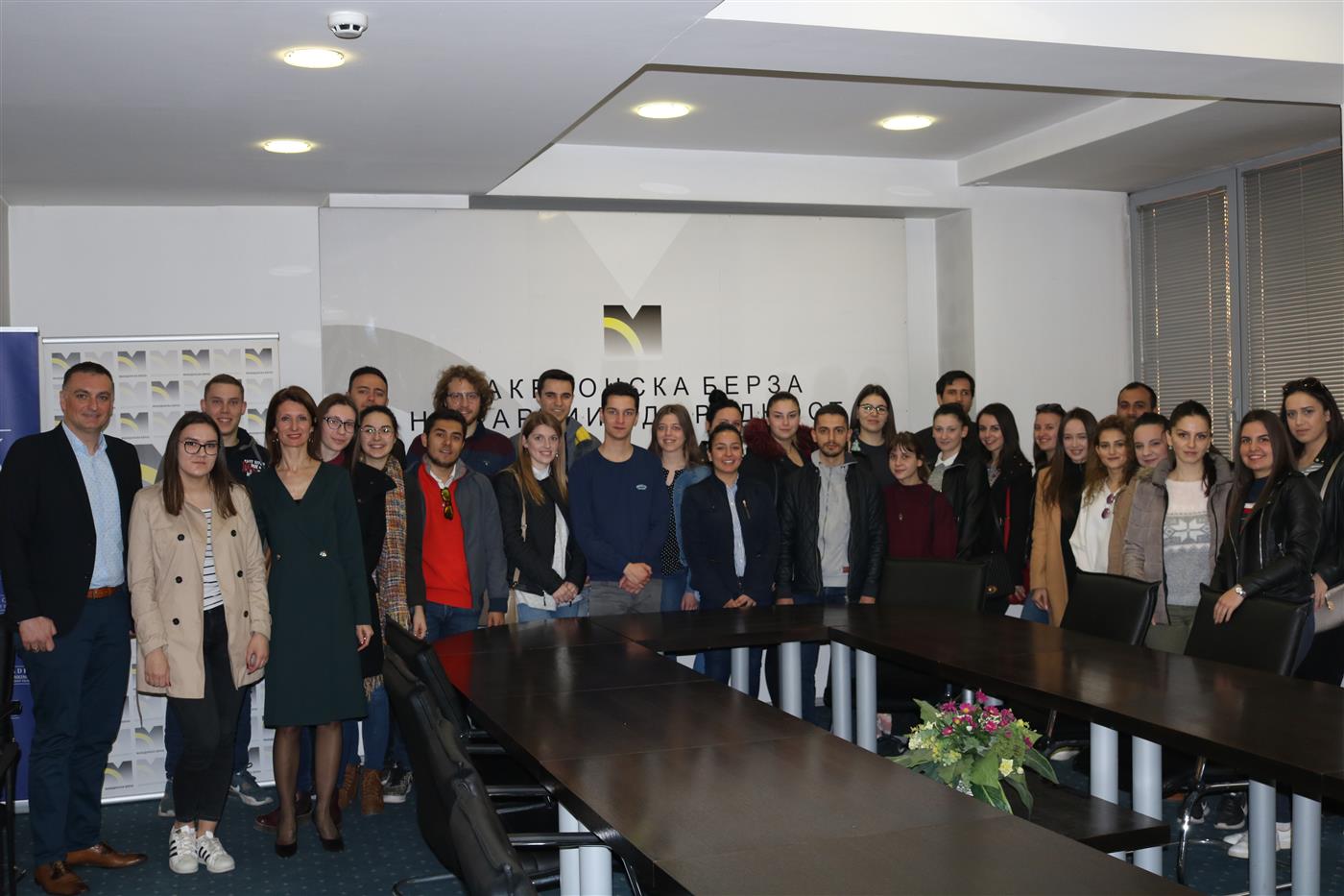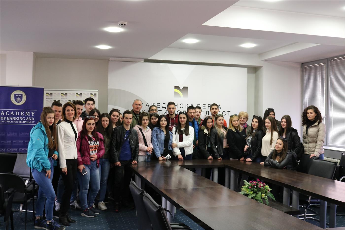 Македонската берза, со цел подобро запознавање на младата популација со пазарот на капитал и улогата и начинот на функционирање на Берзата во нашата држава, остварува соработка со образовните институции во државата. Изминатата недела, Македонската берза ја посетија околу 100 ученици и студенти, кои имаа можност да се запознаат подетално со активностите и развојот на Берзата и развојот на пазарот на хартии од вредност.