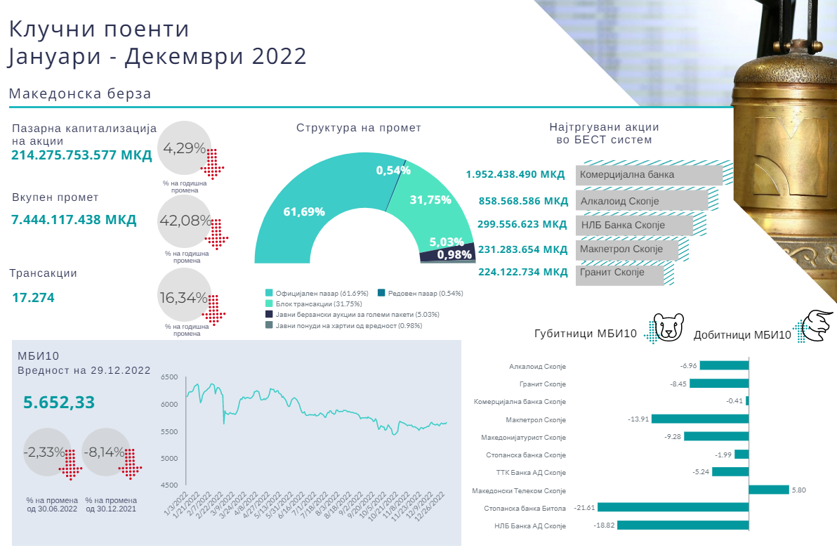 Детални информации за берзанските податоци и движења за 2022 година може да најдете во годишниот билтен на следниот линк