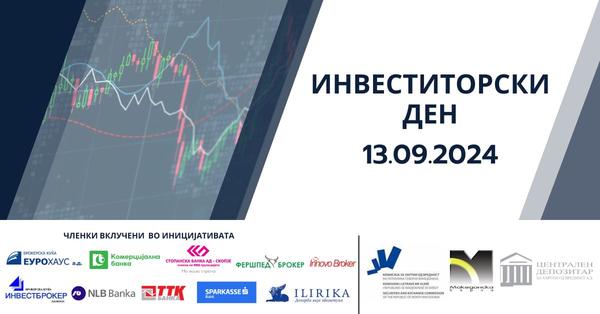 Со цел промовирање на уште поактивно учество на домашните индивидуални инвеститори на македонскиот пазар на хартии од вредност и вложување на населението во акции издадени од домашните компании што се тргуваат на Македонска берза, односно зголемување на знаењето за овие финансиски инструменти и подобрување на инвестициската култура во нашата држава, Берзата на 13.09.2024 година (петок), по петти пат го организира настанот „Инвеститорски ден“. Оваа иницијатива ја прифатија и во неа активно се вклучија Централниот депозитар за хартии од вредност, сите десет членки на Берзата и ЦДХВ, а истата доби поддршка и од Комисијата за хартии од вредност.