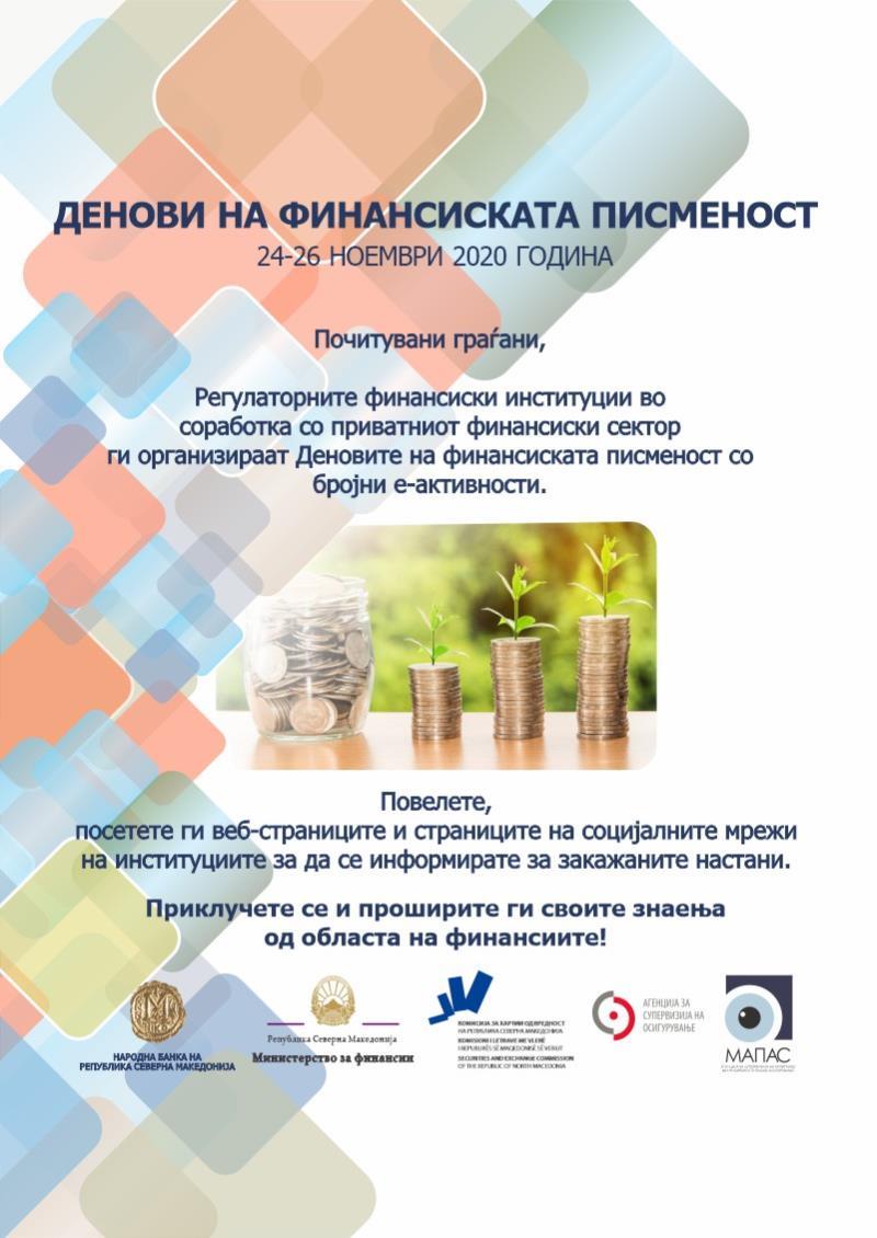 Од 24 до 26 ноември годинава ќе се одржи четвртото издание на Деновите на финансиската писменост кое оваа година заради пандемијата ќе биде одбележано со бројни е-активности. Берзата во рамките на своите заложби за перманентен развој на македонскиот пазар на хартии од вредност, а со цел овозможување на континуирана и висококвалитетна едукација на сите пазарни учесници, се вклучува во одбележувањето на Деновите на финансиска писменост преку нејзините едукативни алатки: квиз на пазарот на капитал и едукативни видеа.