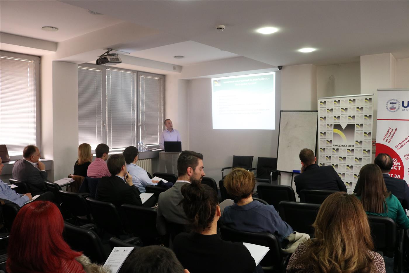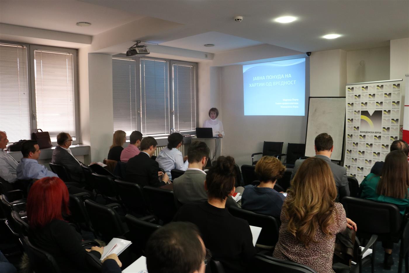 Предавачите на работилницата, професионалци со долгогодишно искуство, вработени во Македонска берза АД Скопје преку своите презентации дадоа осврт на следните области: