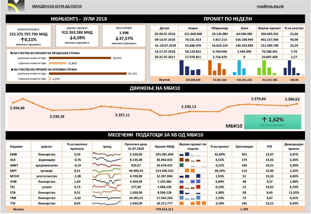 Во продолжение определени акценти за пазарните движења во Јули 2018 година.